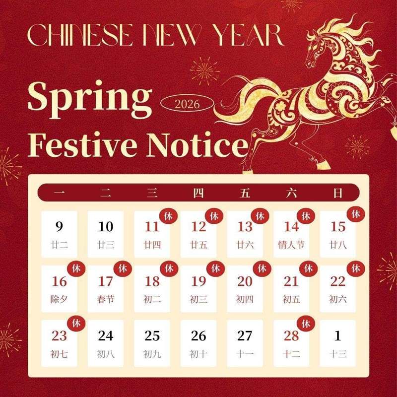 To facilitate advance work planning and business coordination for all parties, we hereby announce our 2026 Spring Festival holiday arrangements and related service guarantees as follows: